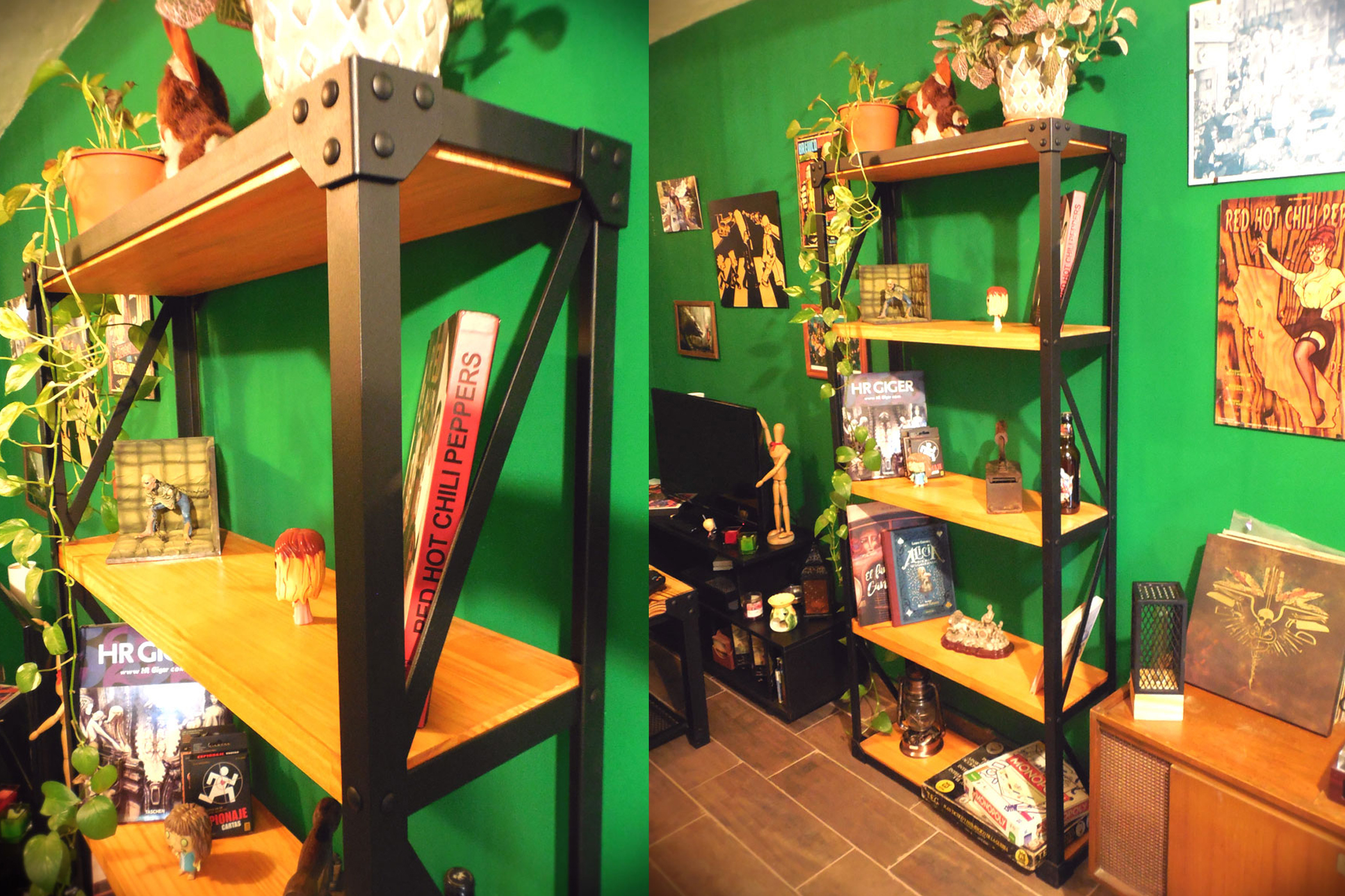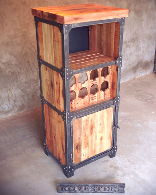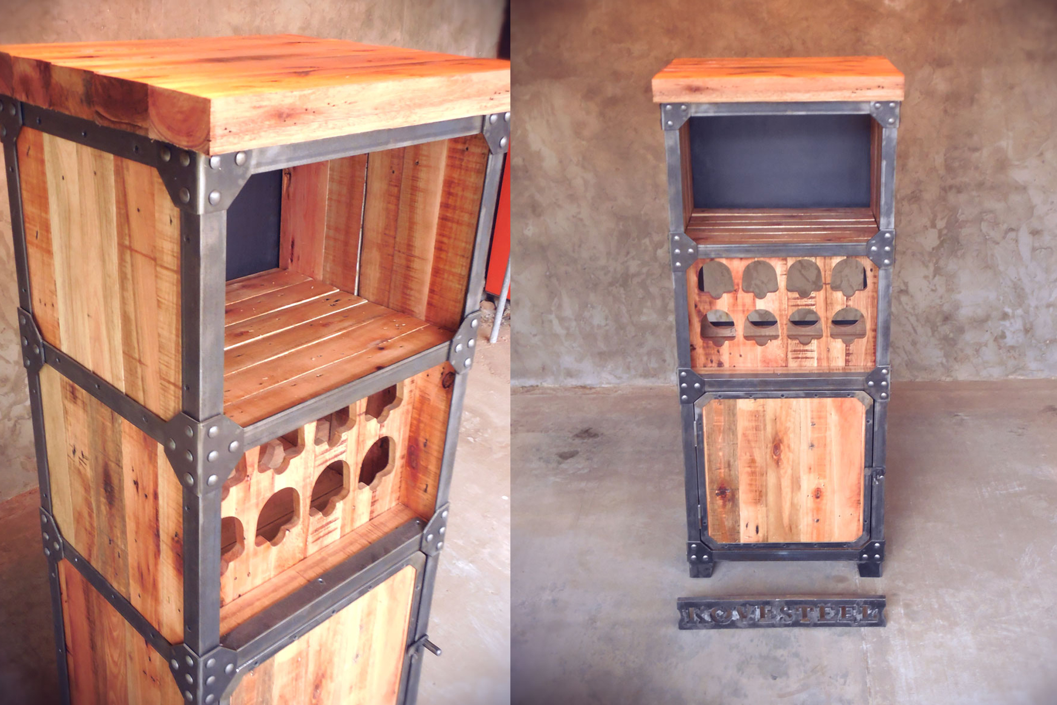 Bodega hierro terminacion mate y madera maciza terminacion satinado.