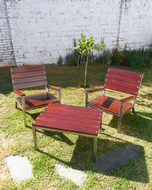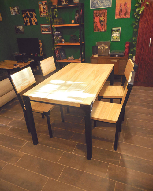Excelente juego de mesa y sillas estilo industrial, trabajado madera. Combinación en hierro pulido laqueado con terminacion brillante. Consultar por maderas en stock.