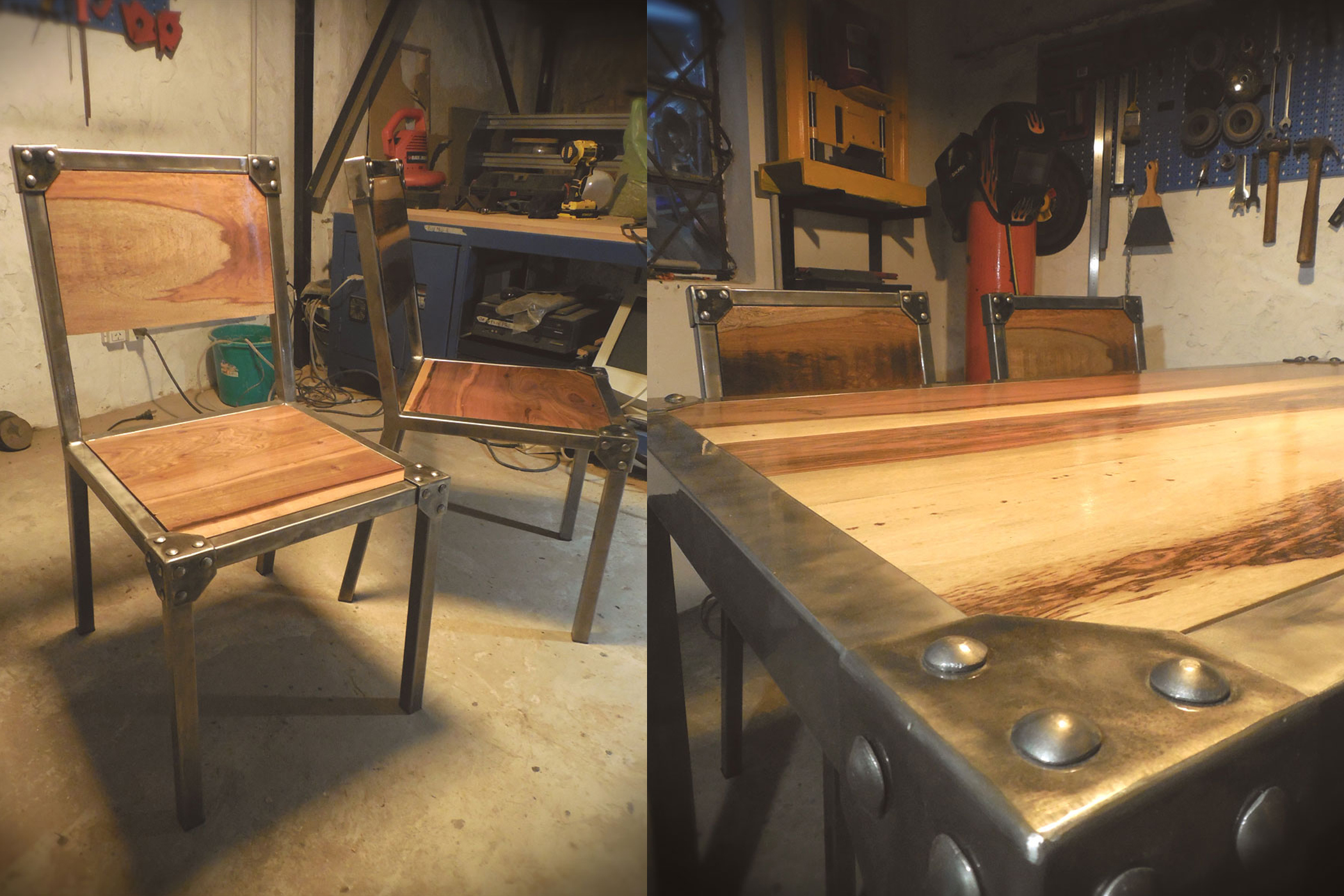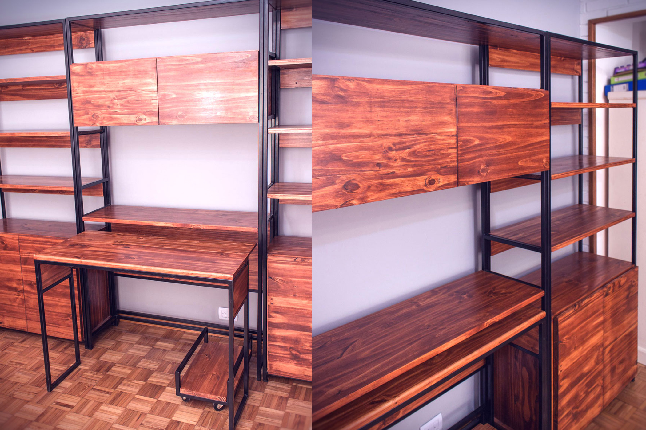 Modular escritorio hierro estructural y madera maciza.