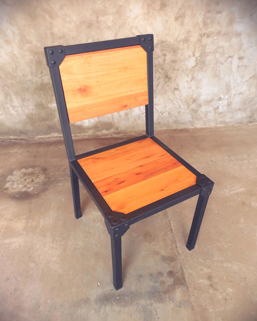 Silla en hierro con pintura al horno texturada y madera de eucaliptus.